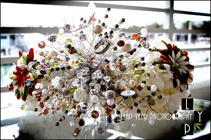 If you are looking for a unique wedding idea, check out the photo of this Bride’s non-traditional, bead bouquet as an alternative to traditional flowers.  This bouquet, like the wedding photos, will last forever.